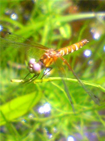 ハッチョウトンボ(八丁蜻蛉 )は、トンボ科に分類されるトンボ 日本一小さなトンボとして知られ、世界的にも最小の部類に属する。名前の由来は、尾張の本草学者・大河内存真(おおこうち ぞんしん:1796-1883)による『蟲類写集』にある、日本では「ヤダノテツポウバハツチウメ」(矢田鉄砲場八丁目)にのみ発見せられるために「ハツチウトンボ」の名を有する、との記載に因むとされる。この矢田鉄砲場八丁目の詳しい場所は現在不明とされるが、名古屋市内の矢田川付近と見られている。青森から鹿児島まで分布するが、綺麗な水にしか生息できないようです。多分見かけても2cmに満たないのでわからないでしょう。1円硬貨の中に入ってしまうほどです。ここ島田緑地(島田湿地自然生態園再生区域)では、今日も発生が待たれていましたが、ようやく昨日あたり出たのと、今日羽化したメス2頭は見つけましたが、オスは来週のようです。今年は冷夏で発生が遅れているようです。クロスジギンヤンマは先週あたりから見かけますが、早すぎて狙えません。あきらめました。ショウジョウトンボも初見でした。ここは土日しかあかないので来週にオスを期待です。きらきら光った羽は綺麗でした。これからゆっくり固まるのでしょう。2010.5.29 島田緑地の羽化したてメスハッチョウトンボ