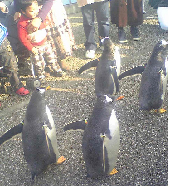 名古屋港水族館もこの時期ペンギンと直に触れ合えるイベントが2回行われます。お客さんのにおいにつられてか、あっち向いてほいのペンギンもいます。えさをくれと言っているように見えます。後ろ2頭がメス前の2頭がオス置いてきぼりのメス餌があるのと勘違い。