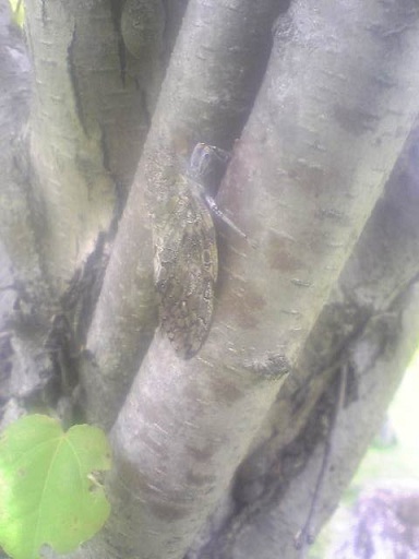雨の時は木の上にカタツムリがいますが、晴れると落っこちています。最近増えてきました。農薬をやらないからでしょう。前にイオンができ、農薬が無くなり増えました。大高緑地