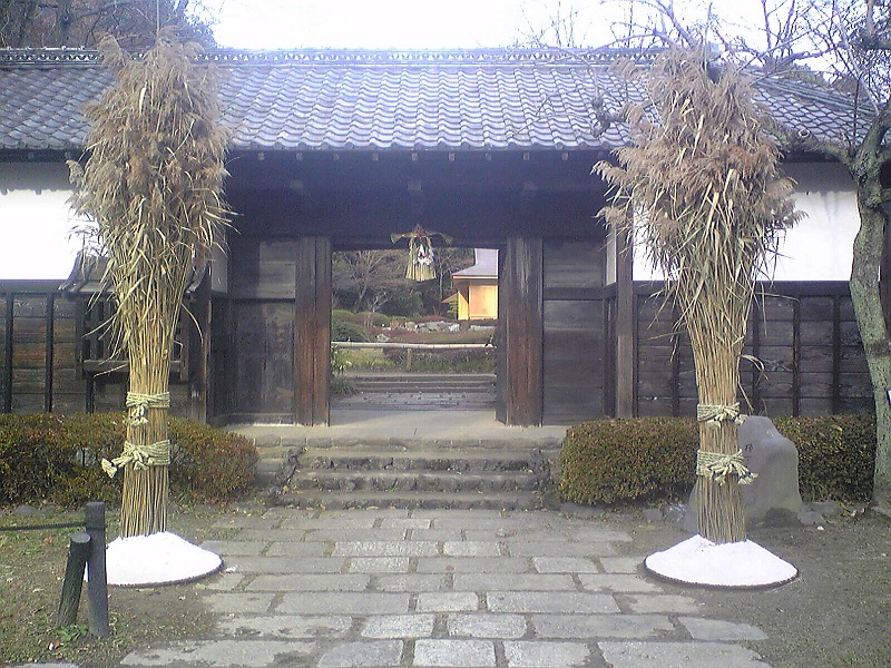 東山動植物園で星ヶ丘門の近い場所にある日本庭園エリア。門松と高山の正月に飾られる飾りがあった。