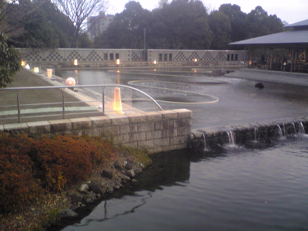 名古屋で一番大きいモミの木もライトアップ。雪つりは月明かりとライトできれいに見えます。寒いのでこの喫茶の中で皆さん時間をまちます。6:30からイベントがあった。