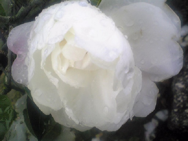 山茶花の赤花に白いものが混ざっていた。この枝を挿し木すれば新しい品種ができそうだ。