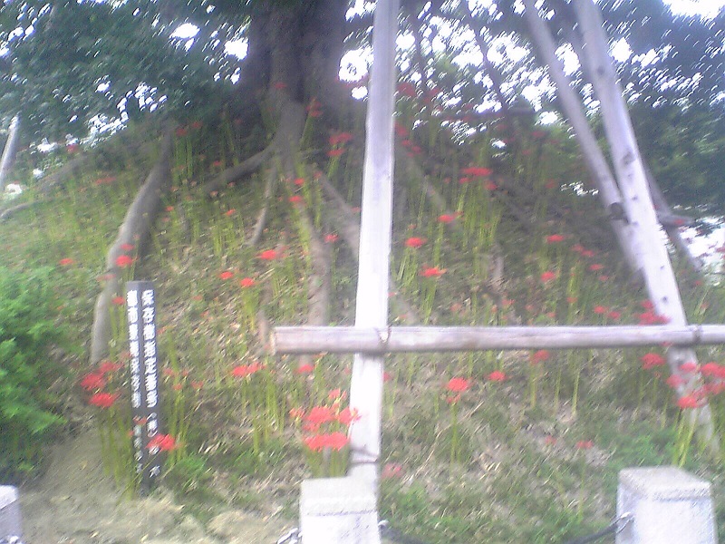 一里塚の彼岸花は大きな木の元で咲いている。自転車で来るといい。すぐ隣に喫茶店が出来ていばしょになった。笠寺の旧東海道