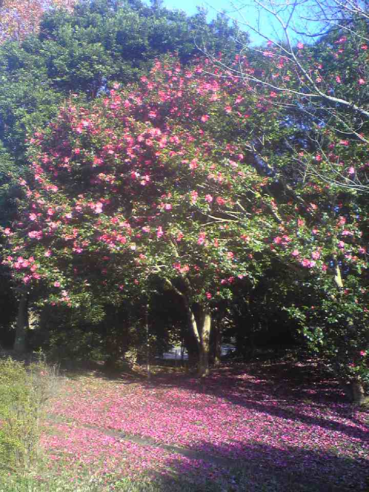 さざんかの花が落ちてきれいになっています。大高緑地。