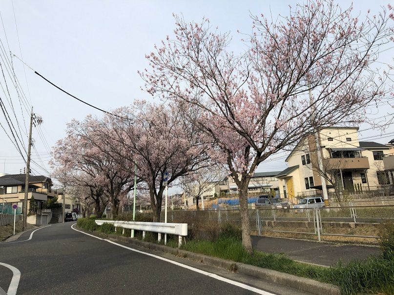 滝の水中学校の前の桜並木。