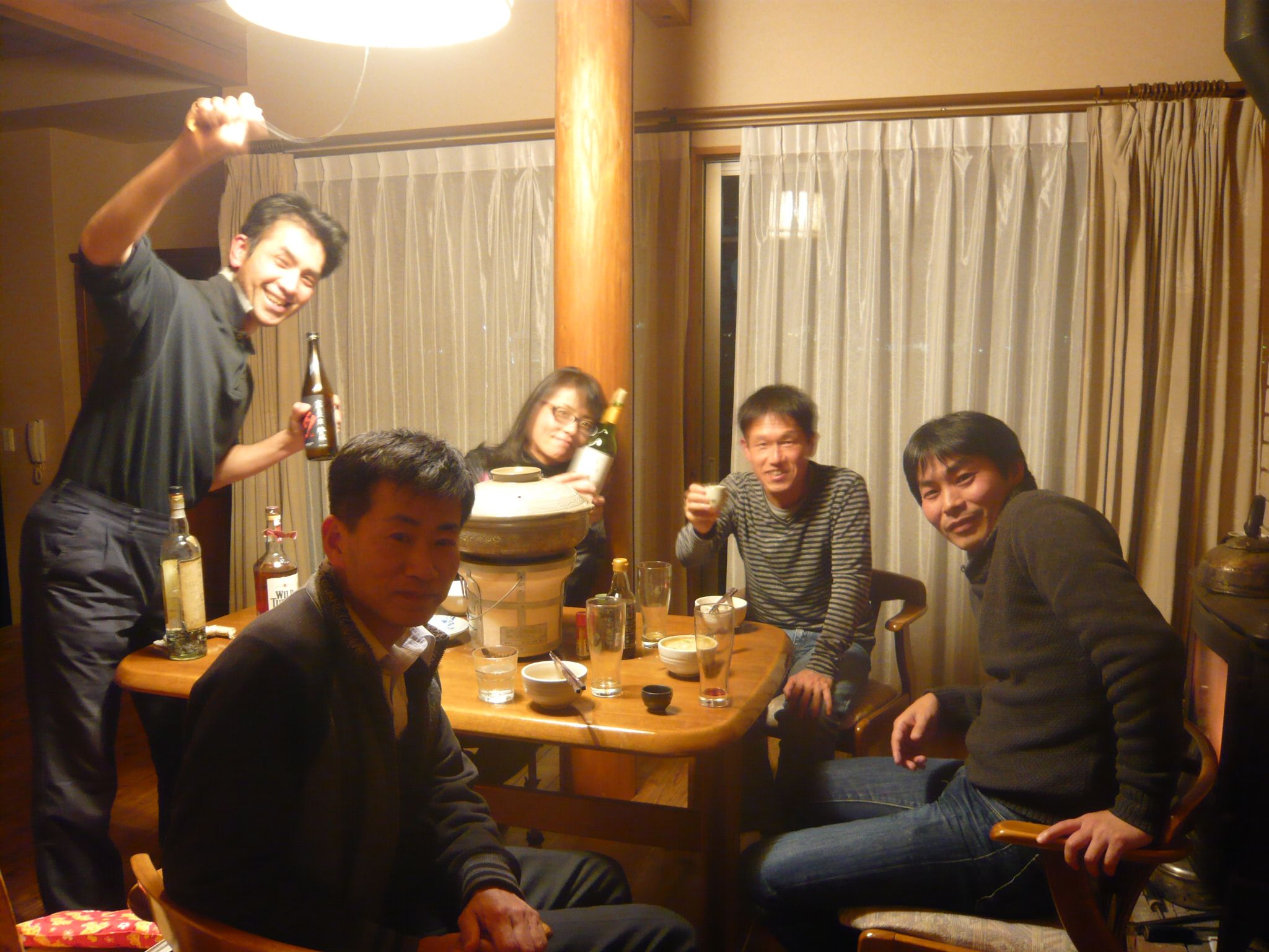 15:00箕面駅でAさん・Mさん・Nさんと落ち合い、コーヨー箕面店で鍋料理の具材を買った。白菜・人参・舞茸・鱈・牡蠣・海老・鶏肉など。帰宅して、Nさんは薪ストーブ、Mさんは野菜切り、Aさんは大根おろし、私は七輪と役割を分担した。17:00には鍋料理もできて美味しいビールやバーボンと一緒にいただく。18:00にはTさんも来て22:00近くまで途切れることなく飲んでいた。