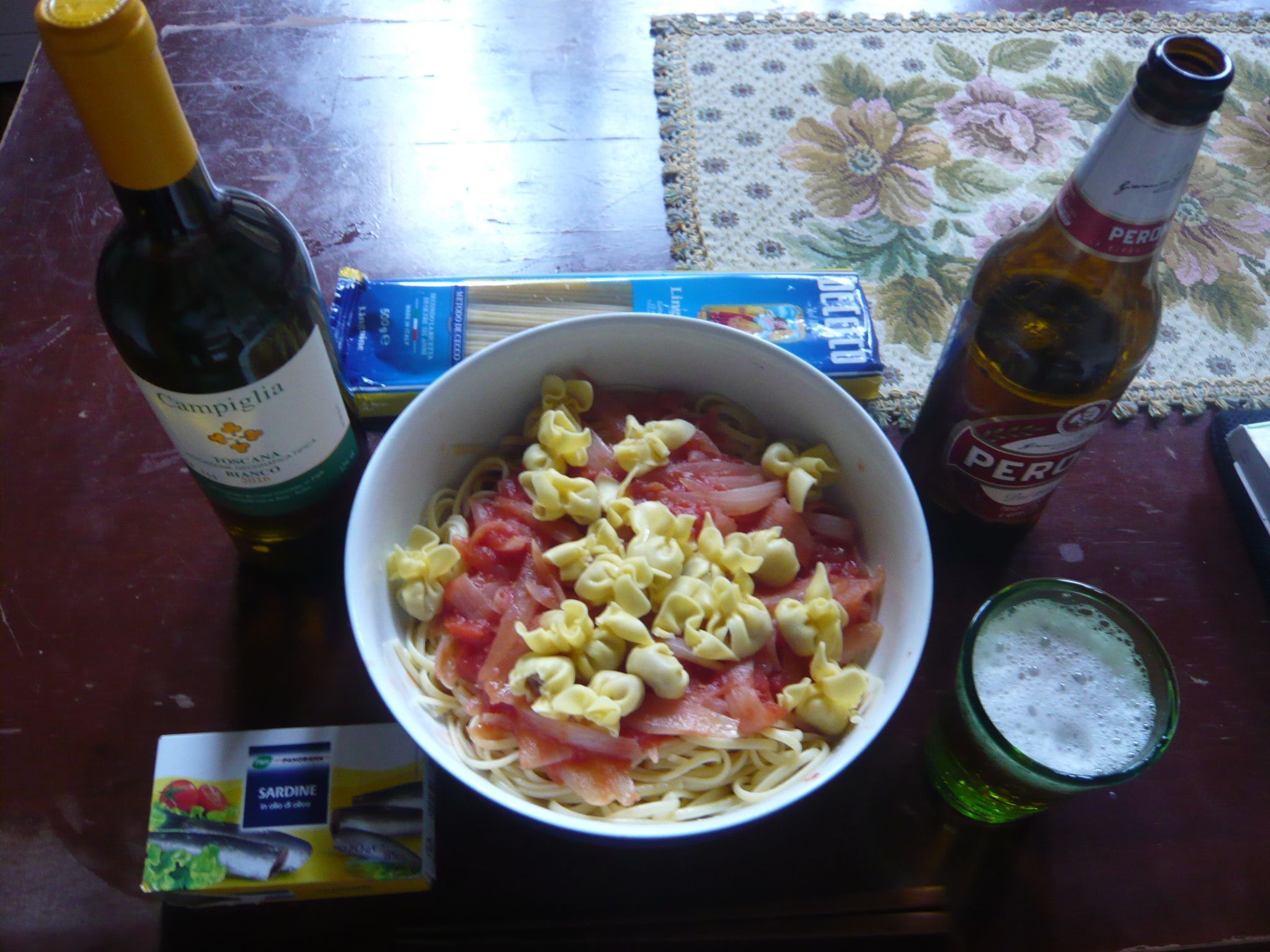 宿にもどる途中でスーパーマーケットを見つけたので早速入る。パスタが安くビールやワインも手ごろな価格だ。これから料理店に行くのが億劫になってきたので、宿の台所でパスタを作ることにした。