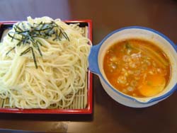 ピリ辛のみそ味のつけ汁とこの店の美味しい麺が絡んで非常に美味しいです。
