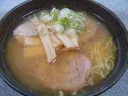 麺は縮れの中太といったところで好来系にしては比較的細めの印象、かん水くささが少し目立ちました。