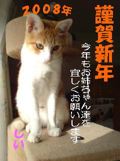 2007年はニャンズに出会え充実した一年でした今年も皆様に感謝し小さな幸せを沢山見つけていきたいと思います(*^-^*)。.。:+* ゚ ゜゚ *+:。.。:+* ゚ ゜゚ *+:。.。.。:+* ゚ ゜゚ *+:。.。:+* ゚ ゜゚*+:。.。他にも可愛いネコ達がいっぱいなのはコチラ どちらもランキングにエントリーしています。1日1回ずつ有効です。