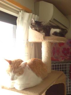 日差しが暖かいなぁ~と思うけど空気が冷たかったり気圧の変化が激しいのか、手術の後がビリビリするこれは、風邪にも注意しなければ・・・・・案の定、パパンがダウン酷い頭痛と、どうやら風邪の引き始めもきているみたいそんなわけで、平日にも関わらず我が家は週末のような状態体が弱っているときは、元気なニャンズを見ているだけで幸せですないつもなら昼寝しているニャンズだが今日は、いっぱい遊んだ疲れたのか、夕方はみんなグッスリ夕飯まで仲良くお昼寝してましたとさ(´∀`)。.。:+* ゚ ゜゚ *+:。.。:+* ゚ ゜゚ *+:。.。.。:+* ゚ ゜゚ *+:。.。:+* ゚ ゜゚*+:。.。他にも可愛いネコ達がいっぱいなのはコチラ どちらもランキングにエントリーしています。1日1回ずつ有効です。