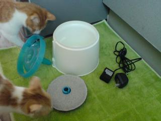 【動画日記】 なんでしゅか、こりは・・・待望のエコノミーファウンテンが届いた!新発売当初から気になっていた給水器我が家にはヘルスウオーターボウルがあるしと買うのを我慢していたが最近3ニャンズで、ボウルだけでは足りない感じがしていたしエコノミーファウンテンが安くなっていたせいもあって買っちゃいました(´∀`)bまぁ、ようは、買っちゃったことへの言い訳ですwそれにしても、実物は想像以上に良くて買って良かったと思える一品でした中身は、たったコレだけ電気系のものが、まるごと外せるので洗うのが楽です本体の容器は、一枚の型になっているしでっぱりが少ないので、すべての場所に手が入りスポンジで隅々まで洗えちゃう本体の裏は、こんな感じ本体は三合炊きの炊飯器位の大きさで軽くて片手でも楽々持てますアヤが覗いていますが、本体は新しいプラの臭いや工業用油なんかの臭いがしなかったので軽く洗って、すぐに使えましたブルーのセンターの部分から水が湧き出るような感じで流れていて水のびちゃびちゃ流れる音はしませんでしたもちろん、モーター音はします寝室なんかには不向きかもしれませんが空気清浄機やPCのファンの音が気にならなければ気にならない程度の音ですリビングやダイニングなら、まったく気にならないと思います【送料無料】エコノミーファウンテン交換フィルター3個入り