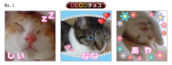 昨日の猫の日に合わせてDECOチョコを注文してみました1月29日の日記にも書いたがチロルチョコの包み紙を我が家のニャンズで作った本当は、2月14日のバレンタインに合わせたかったけど注文が殺到しているのか、1月に注文しても間に合わなかった実際届いたのは、こんな感じ ちょっと見にくいかもしれないけど実物は印刷が粗いです数年前の家庭用インクジェットプリンターというかインクジェットプリンターで写真用じゃなくて普通紙に印刷したような感じというかイメージ画像を見ていただけにちょっと期待していたよりも粗かったかなそれでも、やっぱり我が家のニャンズなだけに嬉しいと思ってしまう、親バカ (´∀`)いい機会なので、ニャンズの体重測定アヤ 4kg3ヶ月位前から変わっていないので成長での体重増加は、もうないみたいなな 3.8kgななも、しばらくこの体重をキープしているので成長での体重増加は、止まった模様しい 3.3kgしいは、さすがに増えたなぁ~2008年10月には2kg11月には2.3kgだったのに冬というのもあるかもしれないけど1kgも増えてる(*^-^*)9月のときは、アヤとこんなに差があったのになぁ~。.。:+* ゚ ゜゚ *+:。.。:+* ゚ ゜゚ *+:。.。.。:+* ゚ ゜゚ *+:。.。:+* ゚ ゜゚*+:。.。他にも可愛いネコ達がいっぱいなのはコチラ どちらもランキングにエントリーしています。1日1回ずつ有効です。