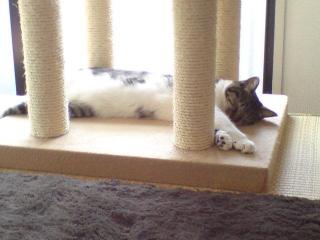 昨日の夜は、雷が鳴り出ししばらく続いて、長いなぁと思っていたら近所にある学校の避雷針に落ちたような音がしたしばらくして、シャワーのような大雨になって春の嵐だなぁ~なんて思いながら、ニャンズの反応を見ていたけどななとアヤならともかく、しいにとっては初めての春なんだけど特に気にする様子もなく、無反応にちょっとガッカリwしかし、その後小さいけど雹が降って窓にバラバラ当たる音がしたのでいつもは、ニャンズのために閉めない雨戸を閉めて寝ることにしたいつものように早朝「ご飯ご飯」と鳴いて眠れないので仕方なくパパンがあげて、パパンはまた寝たすると今度は、しいが叫ぶように鳴き出したご飯はあげたし、なんで鳴いてるのか分からなかったすると、いつものようにキャットタワーに駆け上がりカーテンの隙間に顔を突っ込むそうか・・・・寝る前に雨戸を閉めておいたから覗き込んでも外が見えない眠くてダルイ体を起こして、雨戸を開けに行きまた布団に戻って鳴き声がピタっとやんだ・・・こんな時は、おしゃべりニャンコも良し悪しだ┐(´ー`)┌日が差し込む時間は、みんなお昼寝今日もいい顔して寝てます(*´Д`)しばらくしたら、あれっ?増えてるお日様に当たって暖かいから、アヤも下にきて寝ていたなにげにシンクロ(´∀`)。.。:+* ゚ ゜゚ *+:。.。:+* ゚ ゜゚ *+:。.。.。:+* ゚ ゜゚ *+:。.。:+* ゚ ゜゚*+:。.。他にも可愛いネコ達がいっぱいなのはコチラ どちらもランキングにエントリーしています。1日1回ずつ有効です。