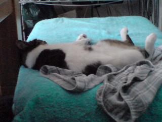 朝、うっすら覚めてきた頃いやに密着感があって辺りを見回すと私の場所は完全に占領されてました私はどこに居たかというとパパンとニャンズの隙間に挟まれて、寝返りうてずw何も暑くて寝苦しい、この時期にこんな密着しなくても┐(´ー`)┌よく見るとアヤの足がしいの頭の上に乗っかってるし・・・いいのか、それでw一年以上も、薬を飲んでいないと鼻水ぐずぐずが長引いていたアヤだったけど薬を飲まなくても維持できるようになって、もう3ヶ月位経った今でも時々くしゃみはあるけど、なんとかもっているようだアヤちゃん爆睡中w。.。:+* ゚ ゜゚ *+:。.。:+* ゚ ゜゚ *+:。.。.。:+* ゚ ゜゚ *+:。.。:+* ゚ ゜゚*+:。.。他にも可愛いネコ達がいっぱいなのはコチラ どちらもランキングにエントリーしています。1日1回ずつ有効です。