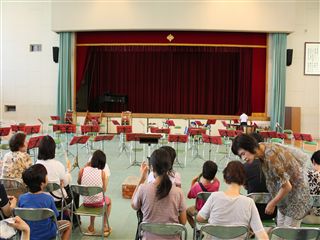 コンクールリハーサルまもなく・・・ギャラリーも集まり始めてます。顧問の先生からごあいさつ。 スタンバイオッケー!さぁ!始めるよ! いよいよ始まった~ うまい! 課題曲、自由曲をコンクールバージョンで演奏した後、指揮者の○盛さんが「初の試みですが、保護者の方は、どうぞ子供達の中に入って、聞いてください。間近でどんな風に演奏しているか、楽譜の書き込みなども見てあげてください。」とのこと。うちの娘は、ホルンを吹いていて、メロディーを吹くことが少なく、あとうちだったり、ハモリ(楽器でもこういうのかな)だったりなので、曲の中でどんな風に吹いてるのか聞けてとってもよかった。。。パーカッション、トランペットも近くで聞けてとってもよかったわ。 親が近くにいることで妙な緊張感があるようでしたが、なかなか落ち着いてました。体育館なので、音は荒く聞こえましたが、それでもさすがです。とってもうまかったよ。自信持っていいと思うよ。あなたたちならやれる絶対大丈夫ただ 吹いてない時の顔がみんな怖いよ。真剣さは絶対必要だけど、もっとリラックス、リラックス、ねっ