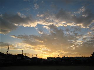 いつもは私と愛犬とペアでの散歩。いつもは部活で忙しい娘も参加。 ここ2日くらい涼しくて 過ごしやすい。このまま涼しくなればいいけど、それは甘いな、きっと。 長~~い影。。。そして 夕日 帰りによそのお宅のお庭に・・・・ うちよりすごい密集率。 8~9ケくらいのセミの抜け殻。。。キモチわるっ。。。