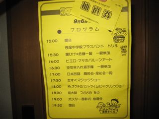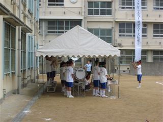 今日は、おらが町のお祭り。ずっと以前は、やぐらを組んで盆踊りなんぞをしていましたが、いつのまにかなくなってしまって久しかったんですが、4年前、町内の人達に楽しんでもらおうと復活しました。今年は第4回め。 業者に依頼した店もでますが、金魚すくい、千本つりなどは、子供会が。わなげは、老人会が。カレー、おでんは町内の婦人方が。それぞれ分担して行う。私は、今年は、おでん販売担当を仰せつかりました。娘の中学校の吹奏楽部もオープニングに出場!まず最初は、コンクール課題曲『ブライアンの休日』そして パート紹介合奏しているとメロディパート以外は どんな音なのかわかりずらかったりするけど、パート別に演奏してくれるとよくわかる。。 フルート&ピッコロ クラリネット(バスクラリネットが写真に入ってない~)サックス(アルト、テナー、バリトン) トランペットホルン ユーフォニュウムチューバ ちょっと遠いけど、パーカッション六甲おろし、涙そうそうを演奏そして 今日初披露のマーチング。 練習始めて数週間・・・足元が土でぼこぼこしてて、おまけに草も生えてるようなとこでよくがんばってるよ。たいしたもんだ。ミキティ先生(マーチングの先生で、外部指導員。私と娘でこう呼んでる)にしごかれてるだけあるよ。ミキティ先生は、とってもおきれいな方でお若いらしい、でもマーチングになるとそれは、それは厳しい先生だそう。厳しく指導してくれるのは、君たちの為を思ってだよ。人に厳しく指導するのは、たいそう疲れるからどうでもよければ 厳しくなんてしない。厳しく、言いにくいことをはっきり言ってくれる人は そういないよ。感謝やね。明日は、舞洲でマーチング・・・いい予行演習になったかな。。。吹奏楽の演奏が終わったら、お祭りの始まり始まり~舞台では、参加型のゲームや民謡、和太鼓なども・・・盛りだくさん。最後には、町民の為のお楽しみ抽選会。約800世帯(だったかな)が対象なので割りと確立はいい。おととしは、ビール1ケース当たったが、今回は・・・とんこの狙ってた お米、掃除機、近所のスーパー銭湯の入浴券はことごとくはずし、んじゃ、またビールでもいいや、いやいや、自転車でも、この際ティッシュでも・・・撃沈・・・すべてはずしましたただ子供会の主催した祭りポスター(描いたのは小学生)に投票した人がいただける入浴剤をいただきました、娘が。投票した人が約200名いたらしい。 (もちろんとんこも投票したが。)200分の9だったかな、、、確か。なんでもいいや、気は心。 いただけるものは なんでも。。。娘は、なんか知らないけど、よく当てる。くじ運だけは強い。 無欲の勝利かそんなこんなで祭りも無事終了町会の役員の皆さん、お疲れさま~~昨日 3時頃から集中豪雨があって、今日も3時頃から雨の予報。2時頃には ごろごろと雷もなっていたのに、雨1滴降らず。楽器が濡れるんじゃないかと心配したけど ほんとよかった。やっぱ日頃の行いやね。。。誰の? って?もちろん私の、、、ちゃうちゃう 吹奏楽部のですわ