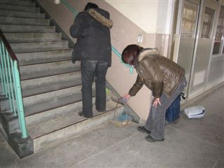 清掃チーム『スターダスト』の新年初活動。チームスターダストのメンバーの息子、娘は2年生。なので 2年の校舎である南校舎のトイレ掃除男女3階分を年末にがんばった。 そのチェックと廊下、階段の砂と埃を掃いちゃおう と。階段は4階分左右に2ヶ。(4階の教室・トイレは現在使用していないが)廊下は2階分。 近頃の家の掃除であまりほうきなんて使うことはない。玄関先くらいだ。私が子供の頃は、家の中もおばあちゃんが、ほうきで掃いてたもんだけど。 これが、腰にくる。掃除をしてるとあったまってくるのはいいが、腰が~~、腰が~~時々 腰をウィ~~ンと伸ばさないとだめ。 昔の人は大変だわ。掃除機さん、ありがとういやいや、開発してくれた方に感謝やわ、ほんま。文明の利器はすばらしいワンダホー 頭から砂埃だらけになりながらなんとか終了 明日は 授業参観&学年懇談。すっきりした中で参観できるわ 次はどこにするかな