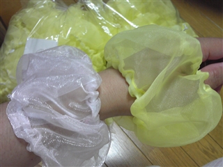 28日にチュチュの納品の話しを書いたが、次は、二の腕につけるシュシュのようなちょうちん袖を作るとその後 昨日、今日でひたすら縫いまくり。まっすぐじゃなく、ちょっとカーブしているとこを三つ折りしてのミシンがけ。 こんな感じデス ほんとは二の腕につけて写真を撮りたいとこだけど、子供がつける袖が伸びてもあかんし、わたくしめの二の腕は到底お見せできませぬので雰囲気だけ。 時々すねやがるミシンをなだめすかせての作業で82ケ完成っすふぅ~~、ちかれた。 でも出来るとなんとも心地いい達成感 さて もうちょいチュチュのデコがんばろっと