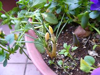 この冬は雨が多いですね今日も雨・・植物にとってはうれしい冬かもしれないですねクロッカスのつぼみが出てきました秋に植えた球根です大きめの鉢に、パンジーとチューリップといっしょに植えました最近までパンジーが寒さに耐えていましたがクロッカスの芽が出てパンジーの花が増え、カラフルになってきましたチューリップの芽も少し見えてきました明日はひな祭り・・街の植物に花が増えてきて春が少しずつ近づいてきているのが、うれしいですね♪