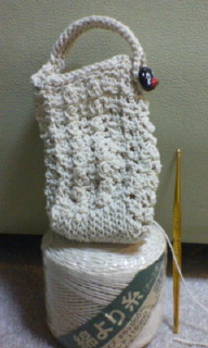 生成色の丈夫な糸とかぎ針で編みました