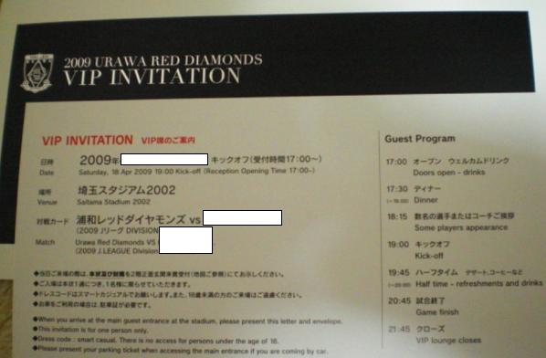 レッズから招待状がとどきました。こんな感じでした。行ってみます。
