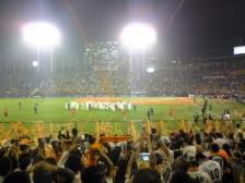 10月23日 クライマックス巨人VS中日 生観戦完勝です!!上原!小笠原! ナイスピー! ナイバッチ!23日の我等がジャイアンツは他にも賞賛する選手は沢山です。亀井の猛打賞! ラミレスのラン! スン! 加治前!個人的にはファームからずーっと応援してきた加治前のタイムリーが嬉しかった。変化球によく食らいついてよく打ったと思います。(偶然当たった感もありますが、ご愛嬌!)そして、ラミレスのランニング!びっくりです!!ファーストランナー時の3塁への進塁!右中間を3塁打!シーズン中にはこのようなプレーは記憶にありません。又、走りも巨体でドスッドスッという感じでは無く、重心を低く地をはうような走り。意外と速く感じました。。そういえば昨日も引っ掛けた内野ゴロで全力疾走し、転んでしまった場面がありましたが、一生懸命にプレーしている様が見受けられましたね。。ラミレス。ますます好きになりました。今日も生で応援します。