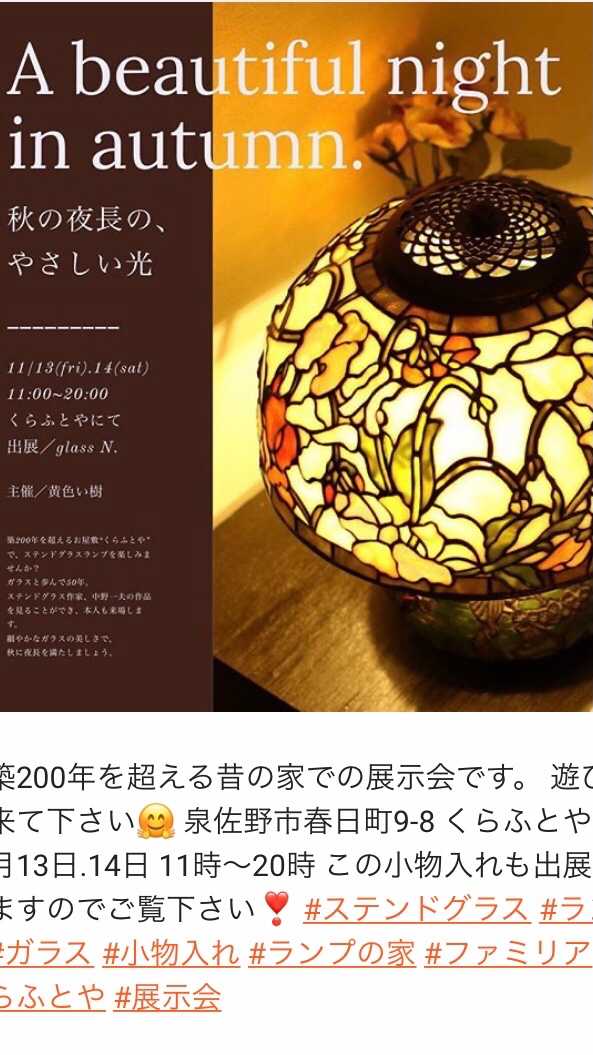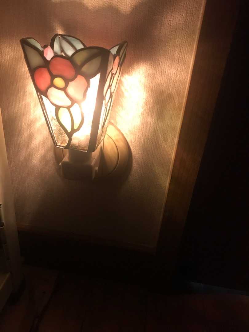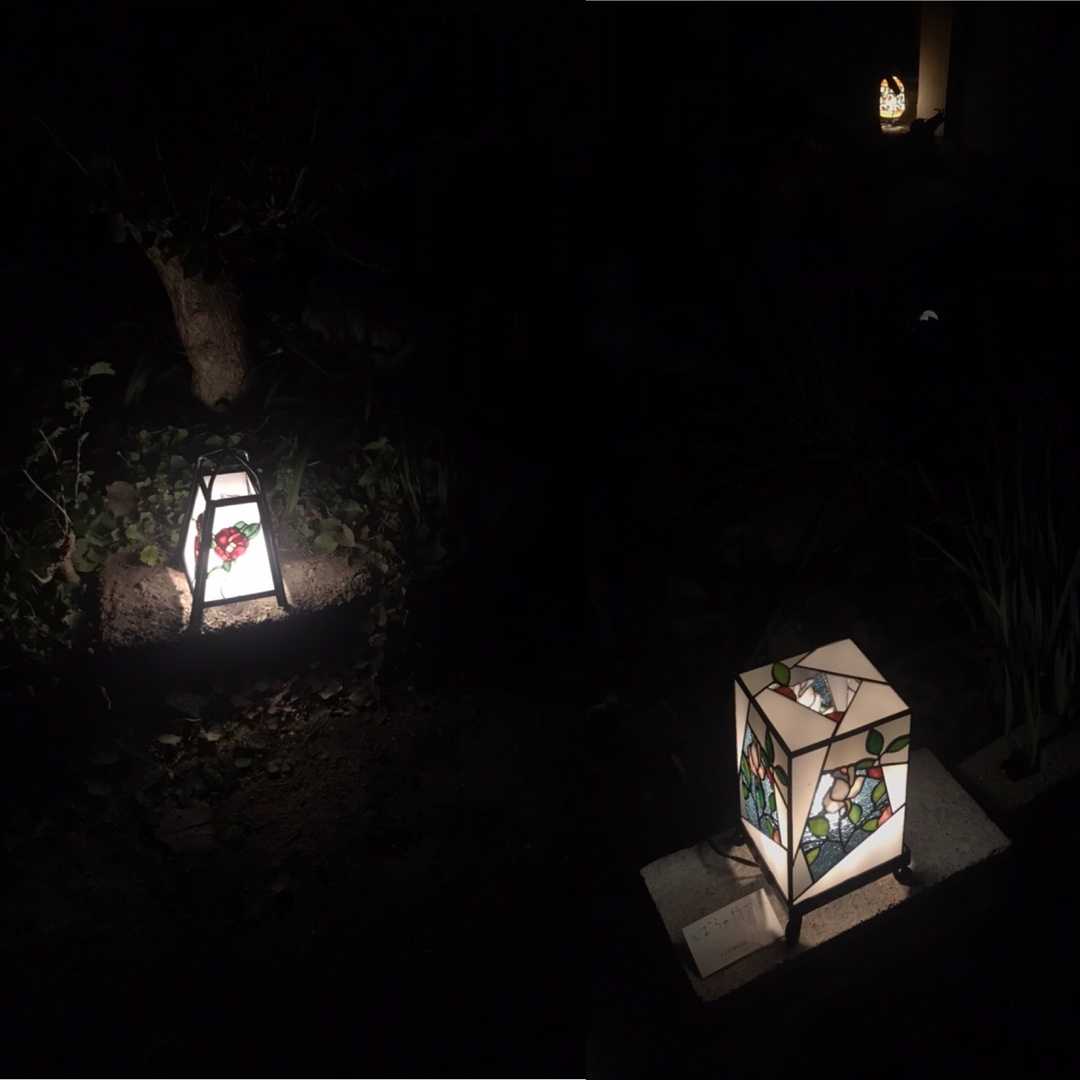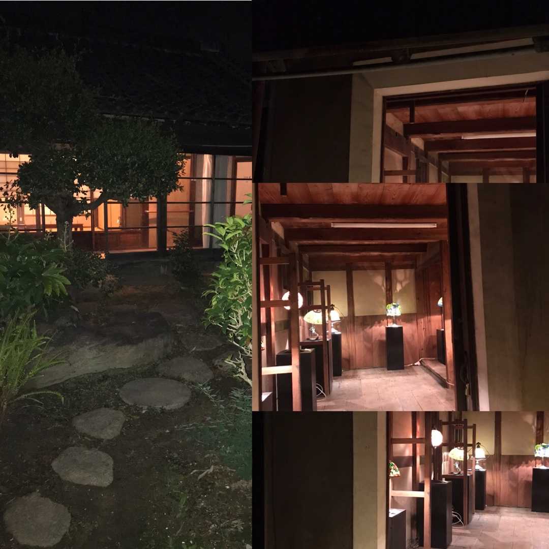 時代劇にでてきそうな通りを歩き、古民家に入ると庭先に置かれたステンドグラスの灯りが迎えてくれました。