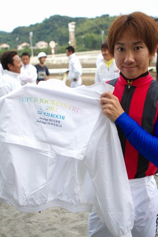 9月21日に高知競馬場でスーパージョッキーズトライアルワイルドカードが行われ、第1戦5着、第2戦11着となり、合計11ポイントで総合7位でした。総合1位は福山の岡田祥嗣騎手でした。 第1戦のブロンズサドル賞はニシノアンブレに騎乗し、ハナに立って逃げましたが直線で一杯となり5着でした。1着は岡田祥嗣騎手のシーチャパラルでした。 第2戦のブロンズホイップ賞はアルテリーベに騎乗し、後方からのレースで上がっていけず11着でした。1着は藤田弘治騎手のマイニングゴールドでした。【携帯閲覧用写真】