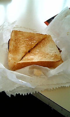 オーストラリアではミートパイの次にポピュラーな食べ物。このホットサンド(´∀`) 朝の調教を終えて食べるホットサンドは本当に美味しい(´~`;) 中身はベーコン&エッグがお気に入り。他にはパスタとかチーズなど種類も豊富。