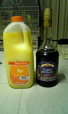 自作カシスオレンジ(笑) うまいなぁ(´~`;) ビールはやっぱ苦手だ。ってか酒弱い(´Д`) 毎日飲んだら強くなるかな?