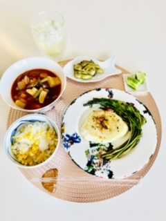 --- 7/11 No,1 ---マラソンお疲れ様でしたm(__)m今日は仕事が朝からバタバタ💦月曜からは疲れる、、、夏野菜御膳 🥒🍆🌽🍅✨たくさん届いた野菜を元気もりもり食べるよΨ( 'ч' ☆)UFOズッキーニ は、生のコリアンダーシードでいい香り🤗🤗🤗たんくろう黒枝豆 は、前に作った青胡椒オイル漬けで炒めて美味しい😋😋😋ミネストローネ#きゅうりの白だし漬け#空芯菜#トウモロコシご飯こちらはピクルス(^^)vピーラーでキュウリをスライスしたら綺麗になったよ~食べるの楽しみ( *´艸`)