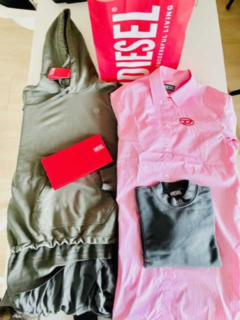 --- 12/12 No,1 ---ディーゼルの先行セール行ってきました(^^)v40%OFFになってたのでお安く買えたよ~ヾ(*´∀`*)ノきっとセールになるぞ!って狙い定めてたのがセールになっててニンマリ( *´艸`)38,500円込DIESEL レディース ワンピース シャツドレス ストライプ 長袖 ビッグシルエット ディーゼル ワンピース・ドレス シャツワンピース ホワイト【送料無料】↑これのピンクだよ( *´艸`)40%OFFだったので23,100円絶対残ってると思ったシャツワンピヾ(*´∀`*)ノあとはこれもセールに絶対なると確信してたパーカーワンピ!52,800円込DIESEL レディース ワンピース スウェットパーカー ディーゼル ワンピース・ドレス ワンピース グレー カーキ レッド オレンジ【送料無料】カーキにしたよ(^^)v40%OFF31,680円これはラス1だったので( *´艸`)30,800円込DIESEL レディース スウェット モックネック ディーゼル トップス スウェット・トレーナー ブラック【送料無料】首元のロゴがいい感じ♪men'sにも同じスエットとパーカーTもあったよ!ラス1だったので即買いw40%OFF18,480円今なら44,000円以上でアイマスクとケース貰えますよ!派手で寝れなさそう( ´艸`)wwwノベルティが可愛い( *´艸`)使うかどうか知らんけどwww総合計119,400円↓40%OFFで↓-47,760円↓=71,640円キャナルのF-JOYポイント1500円分使って=70,140円でした(^^)vでF-JOYポイントが金土日の三日間は、DIESELは12倍だったので7,992円Pたまった(^^)v