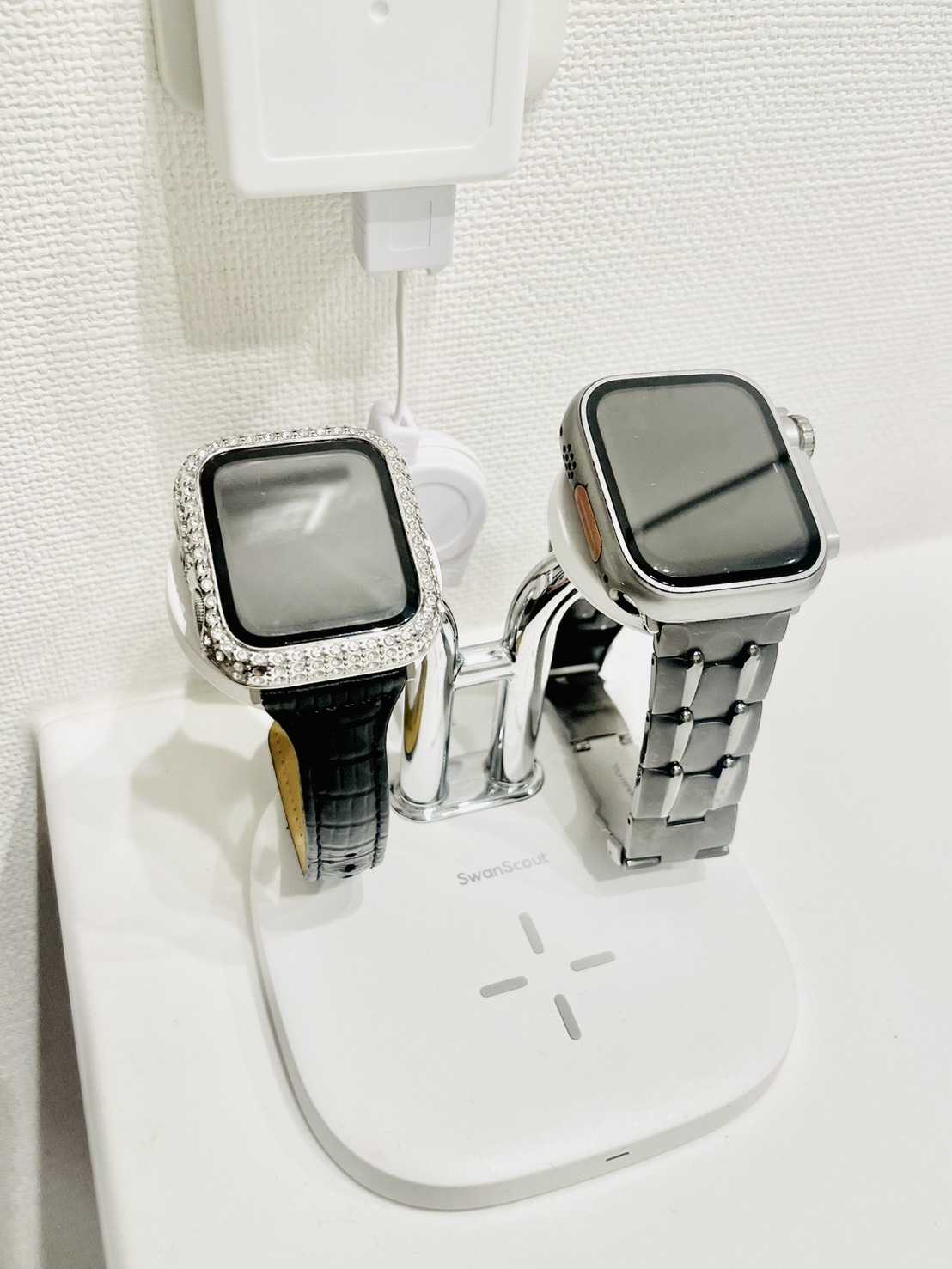 --- 11/4 No,1 ---Apple watch 2台置き充電器いい感じ( *´艸`)5,725円(送料無料)SwanScout 新高速バージョン Apple Watch対応 3.3W充電スタンド Apple Watchとイヤホン適用充電器 2つのアップルウォッチ同時充電 デュアル apple watch 充電器 Apple Watch Series 9/8/7/下のとこはiPhoneも充電できますよ(*^^)v