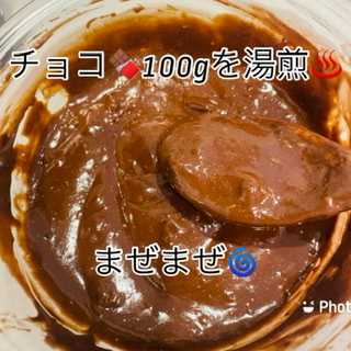 まずは湯せんで、チョコ100g溶かすよ