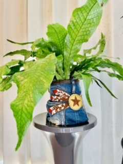 鉢カバー おしゃれ 定番 ヒッコリー ポットカバー L 布 デニム 綿 コットン プランターカバー 植木鉢 プランター カバー ポケット付き 観葉植物 鉢植え 花 室内 収納ボックス 小物入れ 観葉植物用品