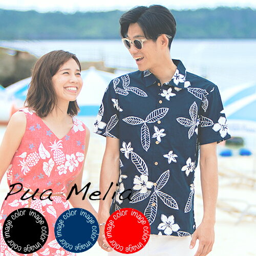 かりゆしウェア メンズ アロハシャツ 黒 赤 沖縄版 かりゆし ココナッツジュース シャツ 結婚式 Pua Melia 全3色 人気かりゆしウェアがリニューアル 半袖 3L 大きいサイズあり メール便利用で送料無料