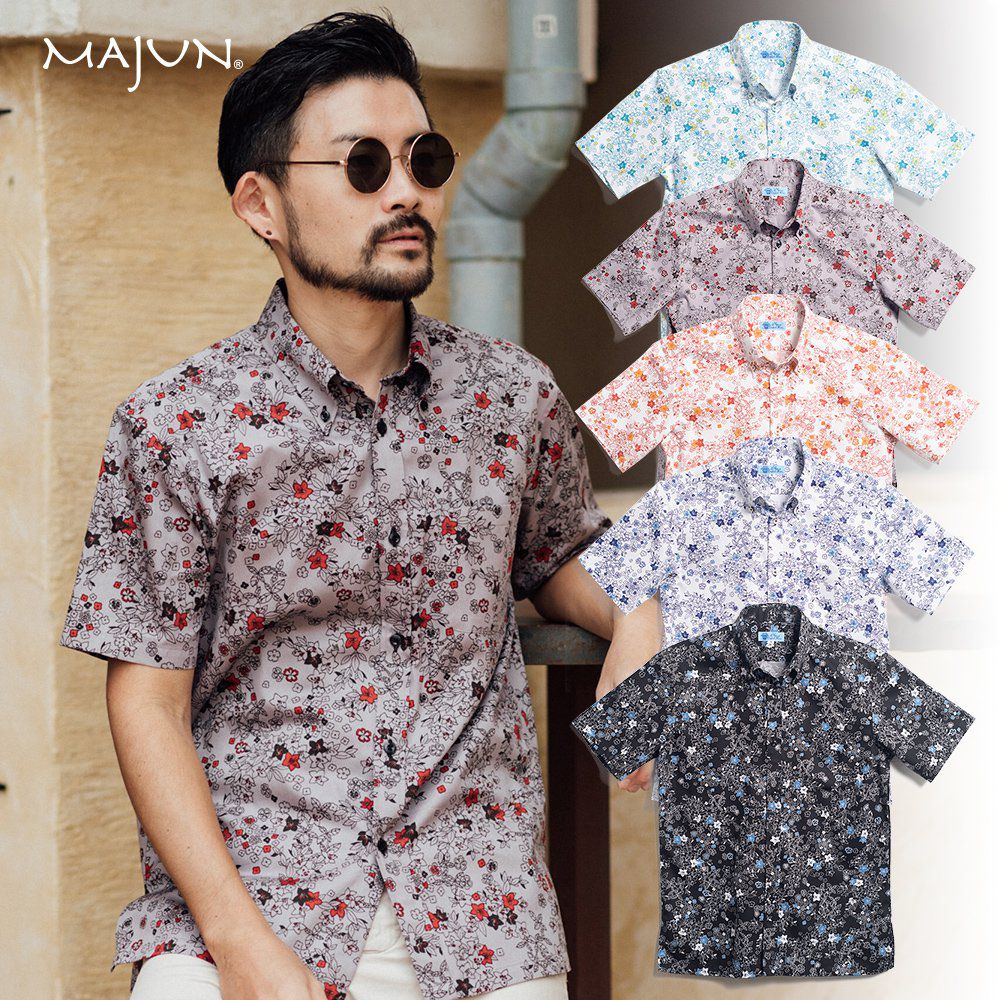 ☆リゾート 人気 2019 ☆ かりゆしウェア かりゆし シャツ 結婚式 メンズ 大きいサイズ 沖縄版 アロハシャツ MAJUN マジュン majun ギフト プレゼント 国産 フラワーガーデン