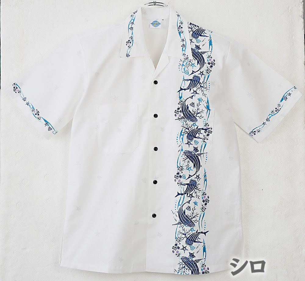 ≪【送料無料】かりゆし ウェア メンズ1418≫【ジンベイザメ柄】≪沖縄風アロハシャツ≫