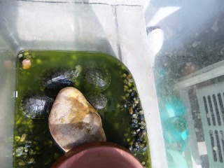 一匹が外に出たまま植木鉢に出入りできないようになっていたんです。