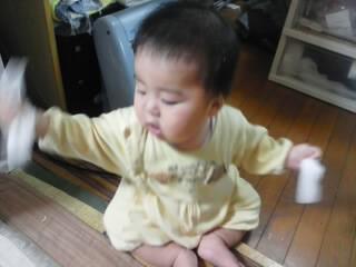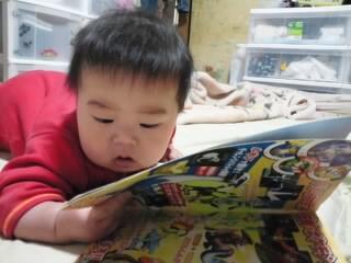 とうとう大晦日・・・我が家はまだまだ大片づけ中、、、キット今年中には大掃除までたどり着けません ・・・ 年明け実家からもどったらキット!がんばって掃除もするぞ !!! 子供達は、、、また遊び始めてます。。。 片づけは???12月25日(日)四男は生後8カ月になりました。。。 まだ ズリバイ! ハイハイにはなってません! 「 うー、うー、、、うきゃっ、、、うー 」 ・・・ どうしたの???三男が置き去りにしていた本を読んでます ・・・ 読めるの??? 真剣です!携帯を構えている私に気づき、、、 お愛想し始めました。。。 かっわいい~ ・・・ にこにこにこにこ ・・・ ご機嫌です! 体もゆすり始めました! ママ、あそんでくれるの~ っといったところでしょうか、、、 そのまま写真を撮っていると ・・・ 体を起こし始めました! ハイハイするの !!!期待して見ていると ・・・ うあーっ !!! っと一声 !!!体を起こし、、、ニヤニヤしながら体をゆすってます。。。 なにしてるの???フガフガ 言いながら手を伸ばします! ・・・ ハイハイは? する気配なし。。。 ん? ・・・ もしかして、、、 けいたい??? 試しに携帯を隠すと、、、しばらくは にこにこ っとお愛想をふっていましたが、、、 そのうち顔が曇っていき フン! っと一息 !!! ・・・ なんや! かしてくれへんのか! って聞こえる。。。 携帯はあきらめたのか、、、 私を無視して、またまた本に熱中しはじめました。。。 ちょっと~ ハイハイはー。。。 携帯貸してほしいなら動こうよ~。。。最近なんでもお愛想で済まそうとして、、、 ダメよ! ますますおデブちゃんになるよ! 「 あー、、、うー、、、うあっ、、、うー 」 また唸ってる、、、 いつもはもっとご機嫌な声だすのに。。。 機嫌は悪くないはずよ ・・・ なんだろ??? あー、、、 なるほど。。。 どうやら本が薄すぎてパラパラが出来ないようです !!!何度もチャレンジしてますが、、、 どうしても本が浮いてしまいます。。。 必死です! う~ん、、、 その本では、、、 それにしても長い時間チャレンジしてます。。。さすがに、、、飽きてきた様子。。。 本を振り回し始めました! でも笑顔 !!!今日はホントにご機嫌ね! ・・・ っで、その本、どうするんだろー ???またまた携帯を構えている私に気付き、、、 こちらを見て にやっ !!! んっ??? ・・・ ガブッ !!! ・・・ 食べちゃった !!! ~ にやにやにやにや ~ わっるい顔してるな~。。。 かわいいけど。。。その後 本は、、、 さんざんかじられて ポイ されました。。。 御苦労さま。。。最近、上の歯も生えてきた四男 ・・・ なんでもかじります! でも、歯固めはムシ !!!なんで歯固めかじらないんだろ??? 振り回して放りなげてます。。。 間違えてるよ?最近は授乳の時も、、、 がりがりがりがり ・・・ ママをかじるのは止めようね。。。