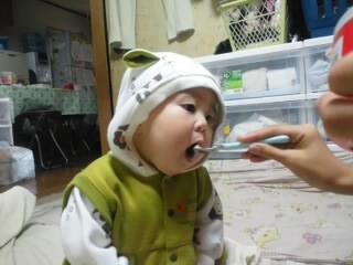 四男も生後5カ月 ・・・ そろそろ離乳食です!10月入ったら !!! ・・・ っと思っていたのに、運動会と遠足に追われ、、、2週間も遅れちゃった! ・・・ これから頑張ります。。。長男の時はいろいろ買い揃えたなぁ~。。。 今となっては懐かしいです!離乳食は、15センチの片手なべで作ってます! 在庫限り!!【IH、ガス対応】ガス火はもちろん!100V・200VのIH電磁調理器具など全ての熱源で使用ができます。【67%OFF】 15cm片手鍋 白いボディのフライパン(ホワイトパンシリーズ)木目がどこか懐かしい…♪IH対応【smtb-k】【ky】うちのとはちょっと違うけどこんな感じのです! あとはすり鉢!【RUB A DUB DUB/ ラブアダブダブ 】おろし器・絞り器・すり鉢の3点セット! 22352055,6【monseuil / モンスイユ】 R.ベビー離乳食調理セット ベビー/赤ちゃん 【離乳食】【調理セット】【調理器具】【セット】【グッズ】【動物 アニマル】【キャラクター】【かわいい】【子供 キッズ】【プレゼント】【ギフト】【出産】これくらいのセットで十分です! あとはスプーン、、、けっこう重要!ポイント2倍(10/18 9:59迄)リッチェル TLI(トライ)シリーズ UF 離乳食スプーンこんなの! 食べさせやすかったです! ただし・・・スプーンの素材は赤ちゃんによっては好き嫌いがあるので、、、過敏なあかちゃんのスプーン選びはむずかしいです。。。10月14日(金)とうとう今日から離乳食開始です!前日に炊きたてご飯を一回ぶんずつにわけて、、、一週間分くらい冷凍しておきました!5人目になると、、、専用の器具はなにもありません、、、家にあるものでやってみよう!片手なべはまだあるので、、、これに冷凍ご飯と水をいれ《おかゆ》づくり。。。すり棒はもうないので、、、適当な調理器具でつぶしながら まぜまぜ 、、、はじめてのおかゆにしては、、、つぶし方がちょーっと荒いけど、、、まあ大丈夫でしょ!初日から3日間は《スプーン一匙》・・・たべるかな? 口に入れてみた、、、うわ~ ・・・ なんかすっごく考えてるよ~ ・・・ へんな顔してる~気にせず、どんどん口に持っていくと・・・なかなか口を開けないわりに入ったものは出しません、、、完食~。。。思ったよりスムーズに食べてくれました! ・・・ 良かった。。。神経質な子だとスプーンの素材の好き嫌いとかあるけど、、、この子は大丈夫な感じ?食べ終わったらご機嫌 ♪♪♪15日(土)は長女がチャレンジ! ・・・ 16日(日)は祖母宅で食べました。。。祖母はとにかく離乳食を食べさせたいようす、、、 食べてる姿 かわいいしね!「ホウレンソウとかすって入れていいか? ・・・ 味噌汁のうすいのは?」・・・ 気持わかるけど、、、 まだまだです! とりあえず《おかゆ》だけで、、、「そうか、、、まだあかんのか。。。」 もう、孫すきね。。。 助かるけど。。。とりあえず第一段階は無事に終了~。。。 明日からは《スプーン2匙》です!