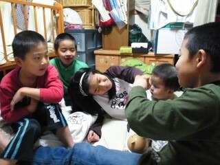 ず~っとクリスマスプレゼントと四男の話ばかりで、、、他の兄弟の事を忘れてたわ。。。11月29日(火)長女の誕生日でした。。。 といっても ケーキ を食べただけ、、、 ごめんね~。。。ケーキのまわりについてるビスケットの枚数でケンカしてたな。。。11月30日学芸会・・・三男は保育園に預け、、、四男とパパはついて来ました。。。二男の「僕、はじめの方やから」という言葉を信じてビデオを構えていたのに、、、ぜんぜん二男はでてきません ・・・ たしか あひる をやるはず、、、あ!でてきた! なかなか上手! がんばってパネルでアヒルをつくってます!アヒルのあともう一つ他の組があり、、、「これで終わります」 ・・・ え!終わり??? ・・・ どこが始めのほうよ! って一人で突っ込んっ出ると、、、「プルグラム3番目やしちゃう?」っと旦那が、、、 !!! そうかも!一年生が何番目かじゃなくて、、、あなたが一年生の中で何番目にやるかを聞いたのに、、、二男にものを聞く時には注意しないと、、、 っとわかっていたのに、、、失敗したわ。。腕がだるい、、、 無駄にテープを使ってしまいました。。。次は長男です! 長男は出番もセリフもすべて調査ずみ! しっかり撮るぞ!っと思ったら ・・・ 何故か、咳が止まりません、、、 さっきまで出てなかったのに。。。のど飴を口に放り込み頑張りましたが、、、 ブレブレです。。。 兄ちゃんごめん。。。5年生になると恥ずかしさが出てくるようで、、、 声は大きいが動きは小さい !!!やらされてる感満載の演技、、、 これも成長の証し? ・・・ ちょっと残念。。。次は長女・・・ダンスです! 頑張っておどってます! 何故か咳も止まり、、、しっかり撮れました。 良かった。。。 長女のが撮れてないと、後が怖いのよ。。。で、、、 そのころの四男は ・・・ パパのお膝で爆睡中です。。。昨日は学校の個別懇談。。。 まあ、言われることは想像つきますが、、、最初は長男 ・・・ 勉強は文句なし! 抜群の出来です! ・・・ なんでか賢いんです!「字がちょっと、、、」・・・ 先生、、、あれはちょっとじゃないですよ ・・・はっきり《 汚い 》 っと言ってやってください。。。 あとは???「みかんの皮でケンカしてたので、、、そんな事でケンカしない! って怒っちゃいました」 ・・・ ほんと、子供ね。。。 もう5年生なのに、、、 みかんの皮って。。。次は長女、、、「片づけはできるようになってきました」、、、それはよかった。。。「頑張り屋さんで、友達とも仲良くやってますよー。 あまり自己主張はしはりません」・・・ !!! ・・・ 家では主張しまくりですが、、、 猫かぶってるな。。。最後は二男 ・・・ 「勉強は問題ないんですが、、、 常に違うところを見てます」・・・ なんとなく言いたい事はわかります。。。「でも話は聞いてはるんです! ちゃんと言われたことはいつのまにか出来てはります」、、、 はい、すみません。。。態度が悪いだけで、、、ちゃんと聞いてるんです彼は! 困った人です。。。 「あと、なわとびが飛べません」 ・・・ あ~、、、また拒否ってるな~練習しておきます。。。 でも、ムリかも。。。 彼はイヤな事はできてもしません。。。小学生組は勉強はちゃんとついていけてるようです。。。 このまま頑張りましょう!振り返ってみても特別なんにもなかったな。。。 平凡な日々でした。。。