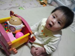 最近《 買い物 》ばかりで、、、子供達のようすを記録してなかった~ !!!とりあえず、、、7カ月になった四男のことを! 、、、 忘れないうちに。。。《 風邪 》を引いたので病院へ。。。 体重を量ると? 9.8kg、、、でかっ !!!りっぱに育って、、、 めちゃめちゃな子育てにめげず、、、 すくすく育ってます!ただの《 鼻風邪 》だってー 我が家は《 喘息家系 》。。。 咳をし出すと心配です!ので ・・・ 薬をもらって一安心。。。 はやく治そうねー。。。11月25日(金) ・・・ 祝 !!! 7か月になりました!離乳食をあげていると ・・・ なんか顔が近付いてきたぞ、、、「あ !!! 」スプーンを取られちゃいました。。。 うごき はやっ !!! や~ん、 返して~ニヤニヤ ・・・ ガブガブ。。。 《 返す気なし 》 です。。。 当然ですね。。。なんとかスプーンを取り返し、、、食事を再開 ・・・ 終了~。。。 食器を片づけて戻って見ると ・・・ なにかをガブガブ、、、 何かな???二男の大切な《 レシラム 》です。。。 そういえば、、、前に置いてあったな。。。置きっぱなしなのが悪い !!! っということで、、、 レシラム救出は見送り。。。ひとしきり ガブガブ とかじられ、最後は ぽいっ。。。 レシラム、、、お疲れさま。なぜか一緒においてあった《 ゼクロム 》 は無視。。。 お気に召さなかったようです。11月27日(日)今日は長女が離乳食をあげてます! はじめての《トマト味》、、、食べるかな?モリモリ食べてます !!! 「 もう、、、かわいすぎ~ 」 長女もメロメロ。。。「 あ !!! 取られたー 、、、 返して~ !!! 」 ・・・ 長女の叫び声が。。。やっぱり長女もスプーンを奪われました。。。 今日は食べずに振り回しております!昼過ぎに私の両親が突然やってきました! ・・・ どうしたの?「お嬢さん、もうすぐ誕生日やろ? やし、プレゼント。。。」 ありがとう !!!開けてみると、、、 !!! 、、、長女の欲しがってた《 リボンちゃん 》です !!!なんでわかったんやろ??? 教えてないぞ??? 謎です。。。長女は大喜び ・・・ お礼もそこそこに3階へあがって行きました。。。四男にもプレゼントをくれました、、、《 オーボール 》 です !!!いや、、、欲しかったけど。。。 なんでわかったの??? ビックリです。。。一番ちいさいサイズの《 オーボール 》ですが、、、 四男も大喜び。。。ごきげんで振り回してました。。。 それを見て、、、 じいじ も、ご機嫌!四男は遊び疲れて寝ちゃいました。。。 満足そうです。。。気に入ってくれて良かった。。。 明日も遊ぼうね。。。二男に《 レシラム襲われ中 》の写真を見せてみた、、、「あー、、、もう、怪獣やな」かいじゅう ・・・ ガジガジ 、、、 定着しそうです。。。