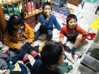 数日前、 突然 長女が長男に、、、「お兄ちゃん、割り切れない割り算ある?」・・・「最近ないけど」っと長男「あまりを・・・って書いたらあかんねんで!」 ・・・ 「なんでや!」っと長男「俺は数式では・・・で表せって習ったで! 答えは《あまり》ってひらがなで書くけど」「今年から変わってんで! ・・・ は使ったらあかんねんで!」・・・ 「 え~ !!! 」・・・ え~ !!! ・・・ぼ~っと聞いてて思わず叫んでしまいました。。。 長女の教科書を確認してみると、、、たしかに式中も 《あまり》 は・・・でなく 《あまり》 とひらがなでかいてありました。。。長女が言うように 《 今年から変更 》 なのかは定かではないですが。。。長男は「 いやいや僕の時は式中は 《 ・・・ 》 で回答は 《あまり》 で習った 」っと言っているので長女の言う事はホントなのかも。。。何故そうなったのかは不明 ・・・ 気になるなあ~長女いわく、、、「 だって、飛び込んだらあかんプールの学校やから !!! 」 いえ、、、 《 あまり 》 の表記の仕方は学校が勝手にきめてるルールじゃないので、、、って、、、 学校のプールって飛び込んだらあかんの??? ・・・ 「 うん! 」お遊びでって事かな?、、、 授業では《 飛び込み 》習うよね???長男に聞いてみた! ・・・ 「授業で飛び込みの仕方は教えはらへんで!」え! そうなの??? だって学校のプール 飛び込み台あるやん!「先生が抱えて飛び込んでくれはるー」っと長女。。。 なんなのそれ???「カッコつけた飾りちゃう」っと長男。。。 意味不明やし。。。 《 飛び込み 》って習うの中学だったかな??? 小学校でやってた覚えあるんだけど。はあ~ 、、、 最近の小学校の授業って、、、 うかつに物を教えられないわ。。。今日の小学生組 ・・・ 毎日夜7時から、テレビ見ながらの《 洗濯物たたみ 》ちょっと! ・・・ テレビに夢中で全然すすんでないんですけど !!!部屋ちらかりすぎでしょ! 四男のベットの上も えらいことに。。。毎日こんな感じです。。。 でもやらせます! 整理整頓の練習にもなるしね!自分で服くらいたためないと、、、 無理やりやらさないとなんにもできせん。。。5年生の長男が 紐を結べない事を知った時のショックときたら、、、こんなんわざわざ教えてもらったかな~~~ 私、いつのまにかできてたけど。。。1年生の二男の《 なわとび 》はホントにできてませんでした。。。というか、、、リズム良くその場でトントントンっと飛び続けるとこができません。。。これって、、、なわとび以前に垂直飛びができてない。。。 どゆこと???あなた 空手習ってるのになんでそんなに運動できないの!!! もう ビックリです !もう、小学生組の相手は疲れる。。。 いつもどうり四男の写真で癒されよう。。。 今日は 《 なわとび 》 を研究中 ・・・ 振り回したり、かじったり、、さすって見たり。「 なにかわかったかな??? 」 ・・・ 15分ほど黙々といじってました。。。四男はなかなか落ち着きがあるタイプのよう。。。 いつも一つの物に熱中してます!