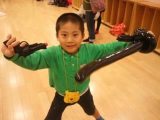 昨日は大雨の中、四男は祖母に預け、、、保育園のバザーに行ってきました!保育園に着くと・・・もうダンスが始まっていました!三男はノリノリで踊っております! ・・・ 大ぶりすぎて周りに当たってますよー!横で長女も久々に再会した友達と恥ずかしそうにしながら・・・でも踊ってます。長男は? 「いえ、もうムリですから 」・・ 5年生に保育園でダンスは酷か。。。二男はまたまた行方不明中 ・・・ まあチケットも持ってるし大丈夫でしょう。。。ダンスが終わると模擬店へ ・・・ 各自ゲームへダーッシュ !!!毎年、当たり前ですが、、、良い景品からなくなってしまいます。。。お食事より先にゲームです。。。 欲しい景品はゲットできるかな?今年はやはり《ワンピース》が多いな・・・あとは《スティッチ》かな。。。長女は《ビーズのアクセサリーキット》が欲しかったようす・・・「あかんかったー」サイコロゲームの出目があわず ・・・ 残念。。。 でもその後、、、長男から《スティッチの四色ボールペン》をもらってご機嫌に。。。長男は《パチンコ》をゲット・・・玉をゴムで飛ばす道具です、、、ワンピースがらみ?あまり保育園の景品にはそぐわないような、、、小学校ならともかく危ないやん !!!まあ、お兄ちゃんは5年生なので喜んでおります。。。 飽きてきた長男は、、、 景品の《グラスタワー崩し》を開け、その後ずーっとパパと楽しんでました。。。君達、何しに来たの !!! ・・・ でも、、、その様子をちびっこ達が見学してます!まわりの子達は興味津津。。。はなれません! 役に立ってるようやし良いか。。。 二男&三男は《バルーンアート》会場でおおはしゃぎ! 《剣》をもらいました!二男はずーっと一人でふらふら ・・・ 三男をつれて風船の列にならぶと、、、「あ!いた !!!」・・・ 前の方に二男発見 !!! なかなかやるな。。。ちゃんと風船の販売時間がわかっていたようす。。。 しっかりしてます!「《剣》もらったー」・・・ ご機嫌でみせてくれた二男の剣は 《ピンク》!!!な、、、なんで《 ピンク 》。。。 本人がよければ良いんだけど 。。。ふりまわしながら出て行きました ・・・ どこいくのよー 一人で。。。三男は、、、「僕も 剣 にするー」 そこに長女がやってきました。。。赤い《プードル》を持ってます! 「かわいいやろ」 風船は小学生にも人気です!三男の順番がきました「剣ください!」・・・ちゃんと言えました! でも、、、作ってくれるお姉さんの手には黄色の風船が、、、 三男の顔が曇りました !!!言いたいことははっきり言わないとダメよ? ・・・ こそっと耳打ちすると、、、「 《 黒 》ください!!! 」・・・ 良く言えました。。。 がんばったね。。。快く《 黒 》 に作り変えてくれたお姉さん、、、ありがとう。。。その後・・・こども達からは《色指定》の声が次々と、、、え~と、、、お姉さん達ごめんなさい。。。 うちの子が大きな声で指定したせいね。。。 我が家の教育の重点は《自分でしましょう》です。。。 できることは手伝いません!とうぜん欲しいものは自分でもらいます。。。 「ママもらって~」はダメです!はずかしくて言い出せない人は、もらえなくて当然! ・・・ 自己主張は大事です!おかげで内弁慶なわが子達も『欲しいものを主張する』ことはちゃんとできます!保育園内で風船が大量発生 ・・・ 当然、ときどき割れる音もします。。。風船が割れる音が苦手な長男 、、、「もう帰りたい~」 限界のようです。。。最後に一回ずつゲームをして終了~。。。 みんなご機嫌で帰りました。。。ふと気がつけば・・・二男の《 剣 》 が《 紫色 》に !!! 謎です。。。めずらしく兄弟げんかもなく、、、なかよくバザーを楽しみました! いつも、、、こうなら良いのに。。。 パパも荷物番、、、おつかれさま~はずれの景品《 4色ボールペン 》・・・ まだ未確認だけど、パパが言うには「4本くらいあるで !!! 」 やったー ボールペン欲しかったのよ~。。。それも 《 紐 》つき! 部屋のフックに掛けられるし、仕事にも使えるやん !!!すーっごくお役立ちです! ・・・ 欲しいな、、、 三男ならくれるかな?今晩にでも、交渉しよーっと。。。