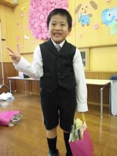 先日、三男は無事に卒園しました! 毎年、卒園の年には、保護者がいろいろしないといけないんですが、、、今年もモメモメ!いや~~~、、、しんどかった。。。 なんでもめるのか? いつも謎です。。。今年は、先生への謝恩会の準備の代表としてがんばりました!料理の手配、人数確認、、会場の確保、、、ゲームの企画、、、、プレゼント準備。子供に歌を歌わせたり、お礼の言葉を言わせたり、、、親も歌っちゃいます!で、いろいろ企画して準備を進めるんですが、、、何かにつけいろいろ言われます。まあ、卒園児は22名、、親は44名、、、 人数いれば考え方もいろいろ。。。まとめるのはなかなかに大変! まあ、最後(謝恩会が終わってから)に、少々おおきなもめ事ありましたが、、、なんとか静まり、、、明日が最後の登園です! 無事、笑顔で最後の日が来て良かった!卒園式は先週土曜日、、、で、卒園式が終わっても3月31日までは通園できます!ので、月曜日、、、いつもどうり「準備できた?」って三男にきくと「まだ~~」あら? 三男はいつも準備はやいのに??? どうしたのかしら?なにやら準備物を鞄にに入れず、、、手にもってウロウロ。。。私と目が合うと、、、不安な顔で何か言いたげ??? 「なにしてんの?」「ぼく、今日から小学生やし、、、 かばん、、、ランドセル???」 ・ ・ ・ え~~っと ・ ・ ・ 確かに小学生の鞄はランドセルね 。。。良く気が付き、なんでも頑張るおりこう三男、、、 それで悩んでたのね。。。なぜ、そうなったかというと、、、謝恩会の祝辞で園長先生が「昨日までは在園児、今日だけは卒園児、、、明日からは 小学生 扱いになります!」「小学生として園に通ってください」 っとおっしゃられてまして、、、どうやら《小学生としてランドセルで通園しないと》っと思ったようです!なんて素直な。。。 でも、やはり何か違うな?っと感じたようす。。。「う~~~ん、小学生として登園するけど、小学校に行くんじゃないし、いつもの鞄?」というと、、、「そっか! 学校いかへんしランドセルいらんか!」っと納得顔。。。 良かった。。。ランドセルにこだわったらどうしようかと思った。。。登園後、先生にランドセル話をしたら《爆笑》でした! 「他の子で、そんなん聞かなかったわ! そうか~~ そうやな、ランドセル、、、」先生、、、笑いすぎですって。。。長男が入園してからの8年間、通い続けた保育園に行くのも今日が最後。。。なんだか淋しいです。。。 でも、三年後、、、キット四男が入園するはず!それまではお別れです! ・ ・ ・ 三年後戻ってきたら知ってる人いるかしら。。。 ちょっと不安。。。