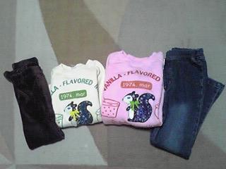 左上のシャツと下のスパッツは、お揃いみたいな感じでした。シャツのレースがカワイイので、裾が短いトップスを重ね着して見せしてもいいなーと思いました。重ねるのがシャツより小さいサイズだと、もたつきそうではありますが(^-^;