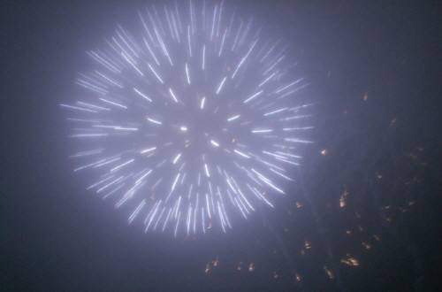 ずっと霧雨続きでスッキリしないお天気だったので、「本当にやるの」って疑問に思ってましたが……19時過ぎ、ドーンドーンって音が我が家の方まで聞こえてきて、やっているのを確信。青い箱車に飛び乗り、隣町・高萩までひとっ走りしてきました毎回見ている所からだと、霧モヤ雲が邪魔になってしまって全く見えず前を走っていたの後について行き、気が付いたら花火大会会場の近くの駐車場へしかし天候が天候だっただけに思った程混んでおらず、車を停めたところ、目の前から花火が打ち上げられているではヤタ━━━━━━ヽ(´∀`*)ノ ━━━━━━!!!!天気が良かったら、開始後にこんな所で悠々と見られるハズがないって場所で、ゆっくりと見ることができました。まぁを構えているコトが多かったんですが。笑やはり夏の風物詩ですね。夏のうちにどうしても一度は見ておきたい。我が地元・北イバでも数年前までは花火大会が行われていたんですが、中止になってしまって……そのうちに北イバの花火大会のビュースポットとして名高かった()ジャスコも閉店になってしまったしまぁ「天気が良ければ……」ってのはあったけれど、目の前で花火を見られるなんてそう滅多にない機会だし、良かった良かった明日は親戚が集まるので、あんまり遅くまで寝てられないな……多い時には我が家に30人以上が集まるんでしょうから。
